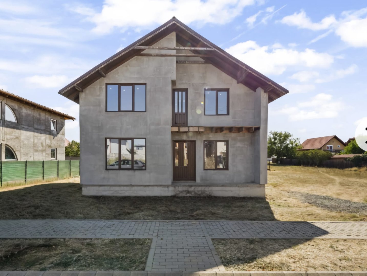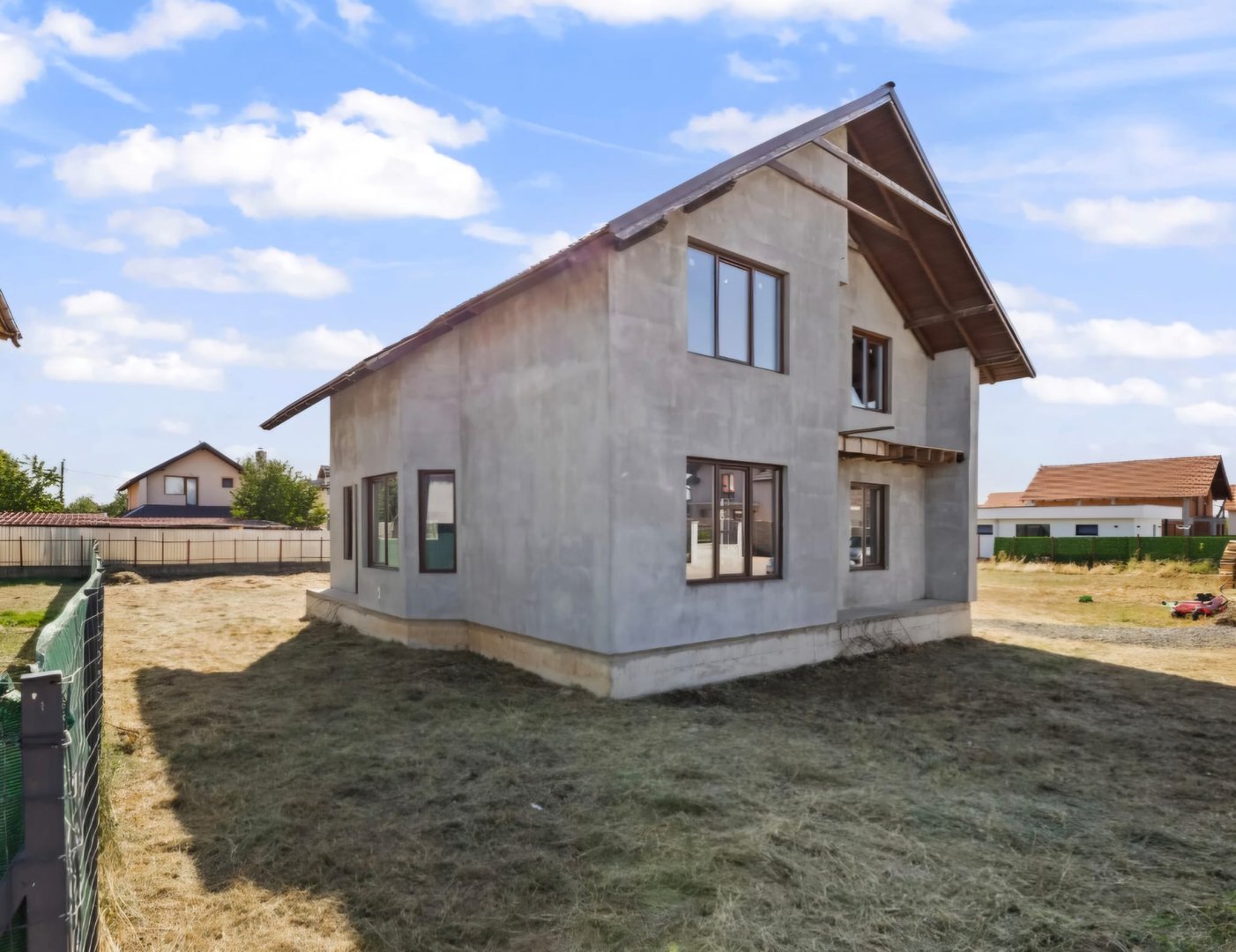 - compusa din living,4 dormitoare,bucatarie separata,3 bai,dressing,camara si camera tehnica,avand geamuri termopan din lemn stratificat si izolatie exterioara de 10 cm;